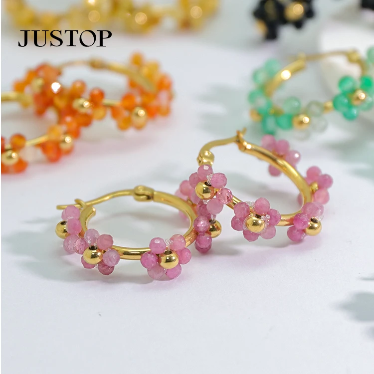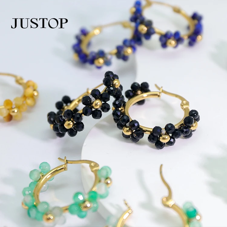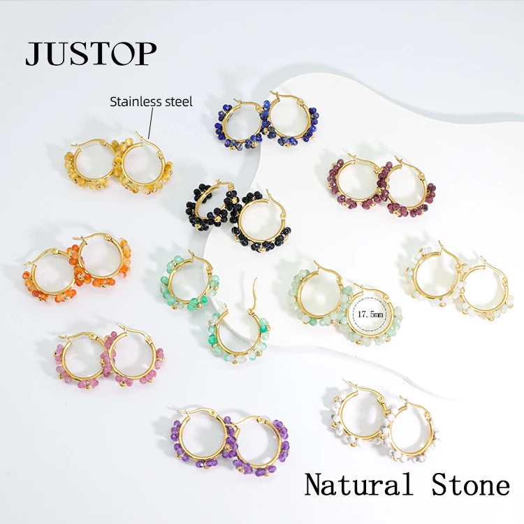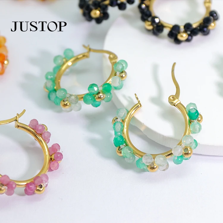 Custom Designer Luxury Statement Hand Made Boho Wire Wrapped Gemstone Crystal Bead Hoop Earrings Women Jewelry